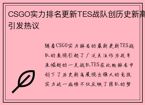 CSGO最新技术排行榜揭晓RNG团队实力强劲位居第一