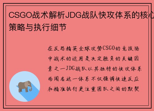CSGO战术解析JDG战队快攻体系的核心策略与执行细节